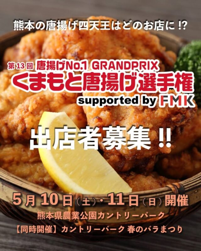 今年で13回目を迎える、くまもと唐揚げ選手権。昨年のグランプリは「うめちゃんち」準グランプリは「OCEAN」銅賞は「今村さん家の手仕込み唐揚」が受賞。