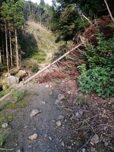 浴びせ倒し…隣接の立木を伐倒して、かかり木(他の木に引っかかって倒れていない木)に当てかかり木を外そうとする行為。