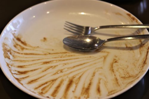 息をするのを忘れたかのように夢中になって食べていると、激辛なのに先にルーがなくなるという奇跡。