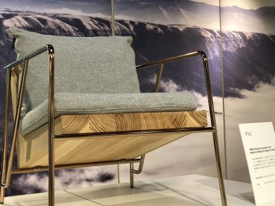 巨大なアーチを抜けると、まるで高級北欧家具のような洗練されたデザインの椅子が展示されていました。