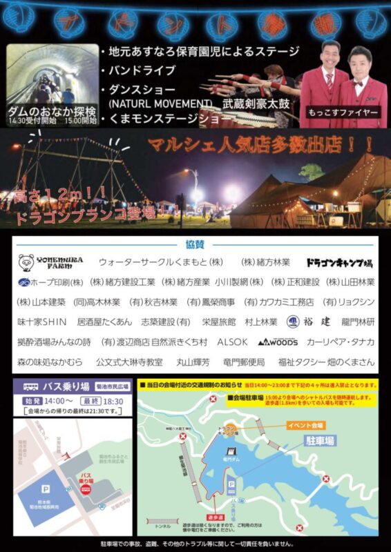 | 開催場所 | 菊池市竜門ダム広場(ドラゴンキャンプ場) |