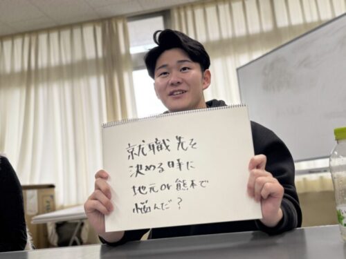 県外出身だけど熊本で就職したパイセンVS地元民で県内就職を希望する後輩という構図ですね。