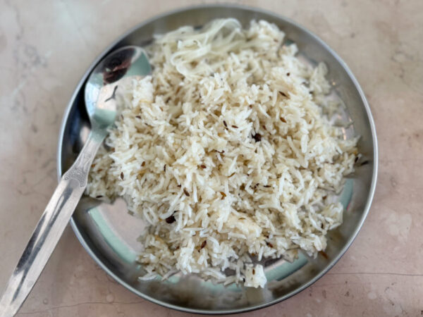 カレーのお供のお米は粘りの少なめのもの。スパイスで炊き上げられています。