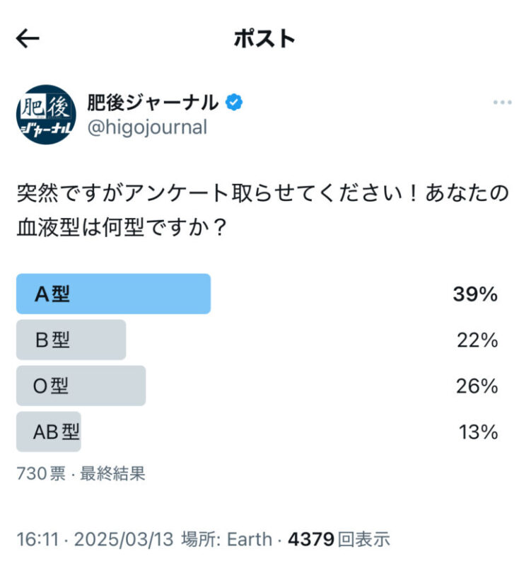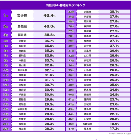 そして熊本県民のO型の皆さま、「希少ぞ!大事にせんかい!」って話のネタにぜひお使いください。