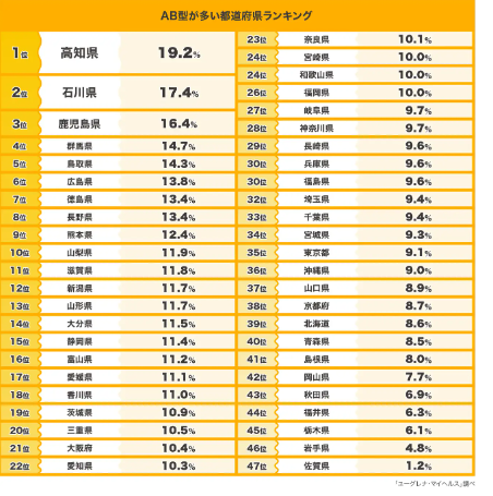 つまり全国規模で見ると、熊本県民のO型がものすごく希少ということになるのでしょう。