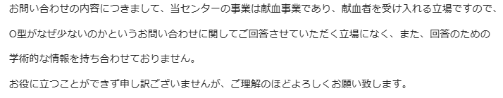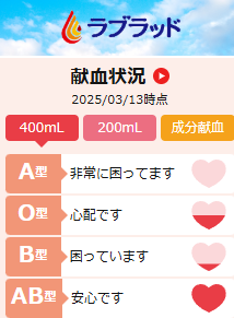 O型は心配です、レベル。てことは献血する人が多い=O型が多いってことでは?