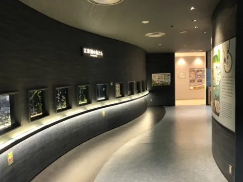 中に入ってみると、水槽の中には江津湖で生息する魚たちがずらりと並んでいます。