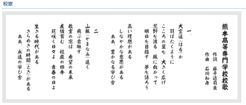 ここで「それでは熊本の校歌に詳しい方にお話を」となれば収まりがいいのですが、そのような方を見つけることができませんでした。残念です。