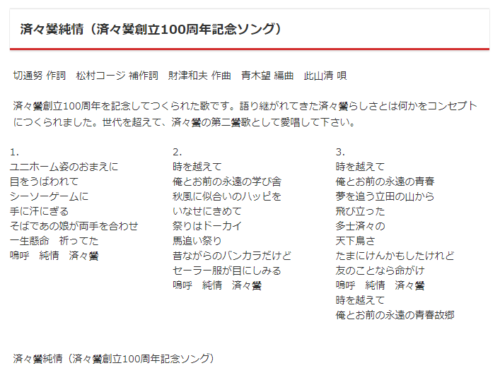 校歌ではありませんが100周年を記念して作られたもの。純情さが伝わってきます。