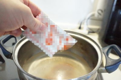 この時に気をつけないといけないポイントは、強火ではなく弱火でじっくりじっくり沸騰するまで温め続けること。