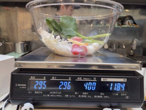 忘れておりましたが、自分で具材を選べるということは、金額も選んだ具材の重さによって決まります。
