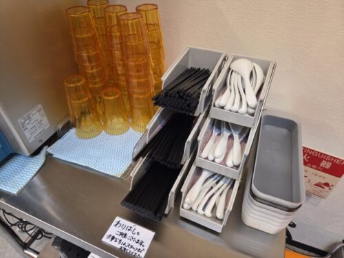 お箸とレンゲも自分で取りに行くスタイルですので忘れずに。