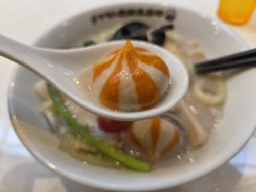 魚卵団子は映え担当。…かと思いきや、コイツ、美味しい!その名の通り、中に魚卵が入ってます。これはもっと入れてよかった。