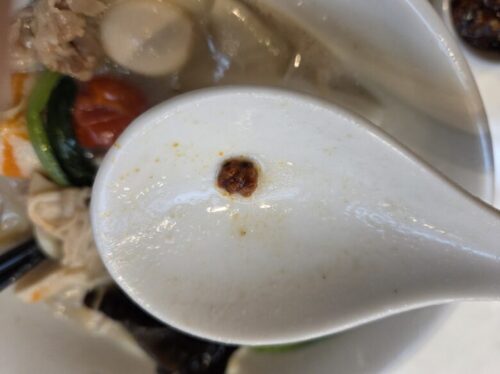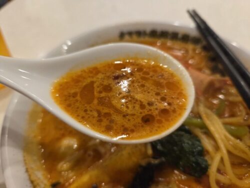ひと口啜った瞬間、熱さと同時に舌に直接響くストレートな辛さ、ですがただ辛いだけでなく旨味も感じられるのでクセになる味わいです!
