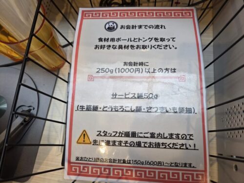取った具材を戻すことはできませんが、具材を選んでる最中に重さや金額を確認することはしても大丈夫とのことです。今どれくらいの重さと金額になってるんだろう、と思った時は迷わず店員さんに声を掛けましょう!