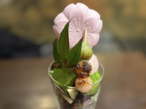 そして「焼き味噌三色団子」、団子の左にあるのは「抹茶わらび餅」。