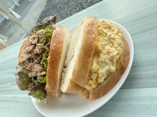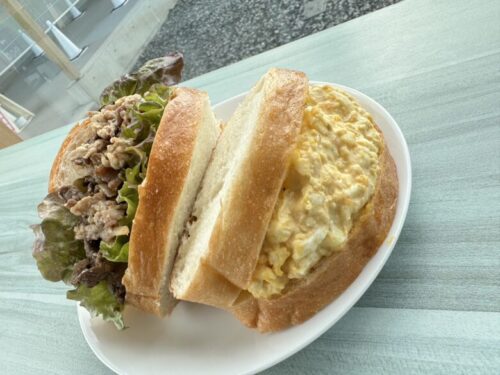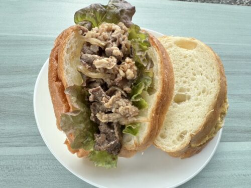 自然豊かな人吉でストレスフリーで育てられた牛肉は、柔らかく旨味が強いのが特徴。甘辛いタレとあいまって無限に食べられるサンドイッチ。