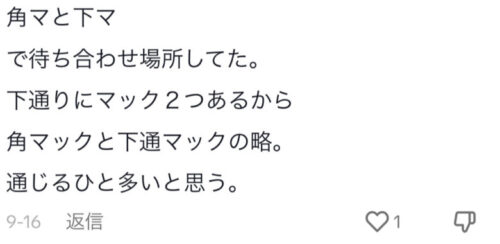 東バイと同じく「角マ」と表記されても通じる不思議。