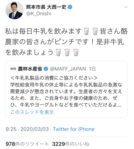 ちょっと気になるツイートを発見。熊本市の大西一史市長のつぶやきです。