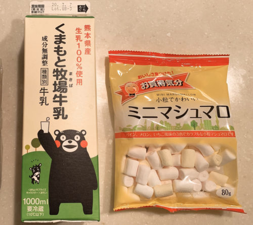 今回スーパーで買ってきたマシュマロは80g入りだったので、牛乳は240ccにしました。