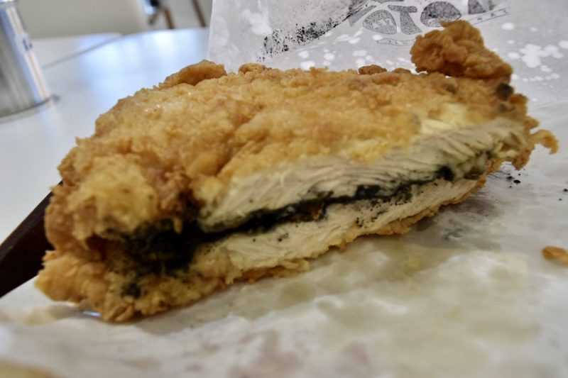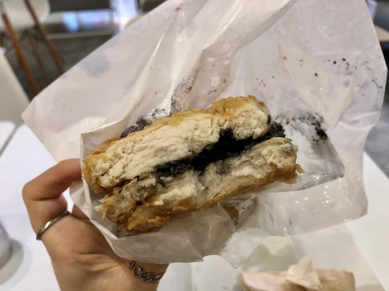 食べると、ザクリとした食感の衣と肉質が柔らかいムネ肉がたまりません。めちゃくちゃジューシーな上、ブラックソルトの程よい塩加減で食欲が倍増。230gって多くない…? と思っていましたが、あっという間にペロリ。多分5分くらいで食べました。