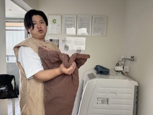 「肌を見せたくない人も使いますし、あとはこれ着とけば男女一緒に入れますし…あ、外気浴するときに着る人が多いっすね」