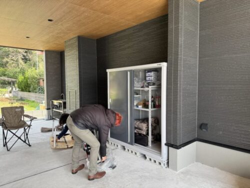 2階から外のガレージに持っていったところで