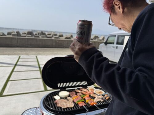 海を眺めながらの肉を焼く作業は想像以上に楽しい。