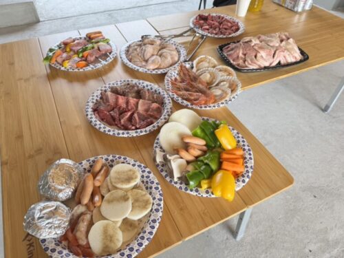 「肉の準備できましたよ~」