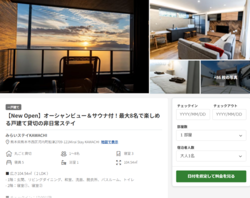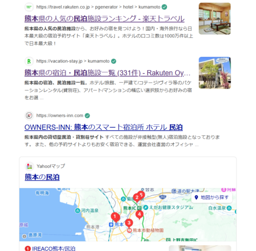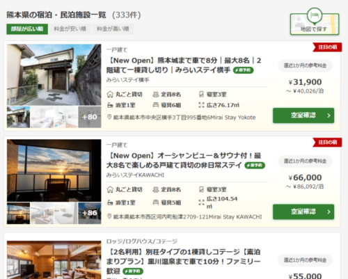 どんなキーワードで検索していいかもわからないかったので「熊本 民泊」とシンプルに調べたところ
