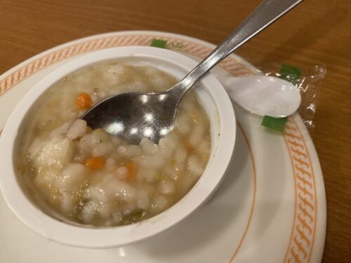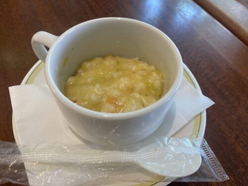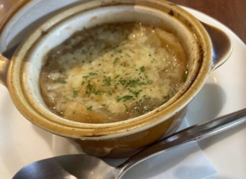 こちらは大人の離乳食、ロイホのオニオングラタンスープ。