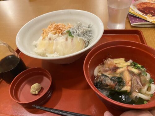 ちなみに、プラス99円(税込み108円)で大人のセットの味噌汁をうどんに変更することが出来るのですが…