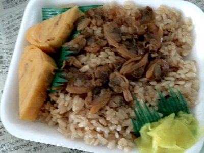 牡蠣やあさりの炊込み御飯もありました。こちらは、あさりの炊込み御飯です。(300円)