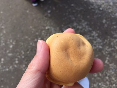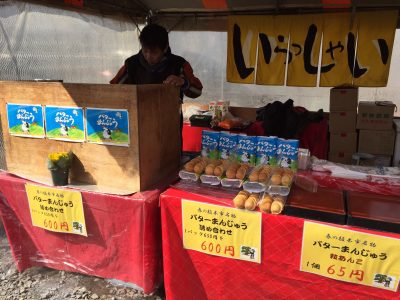 屋台が端から端まで並んでいて、数ある中から植木市名物と聞く「バターまんじゅう」(1個65円)を購入してみました。