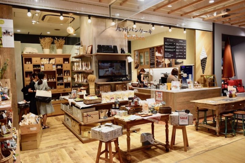 「蔦屋書店熊本三年坂」の1階にある「九州パンケーキkitchen」。ふわもち新食感のパンケーキが作れるパンケーキミックスの商品などが買えますが、お店ではドリンクメニューやデザートを注文できるんです。