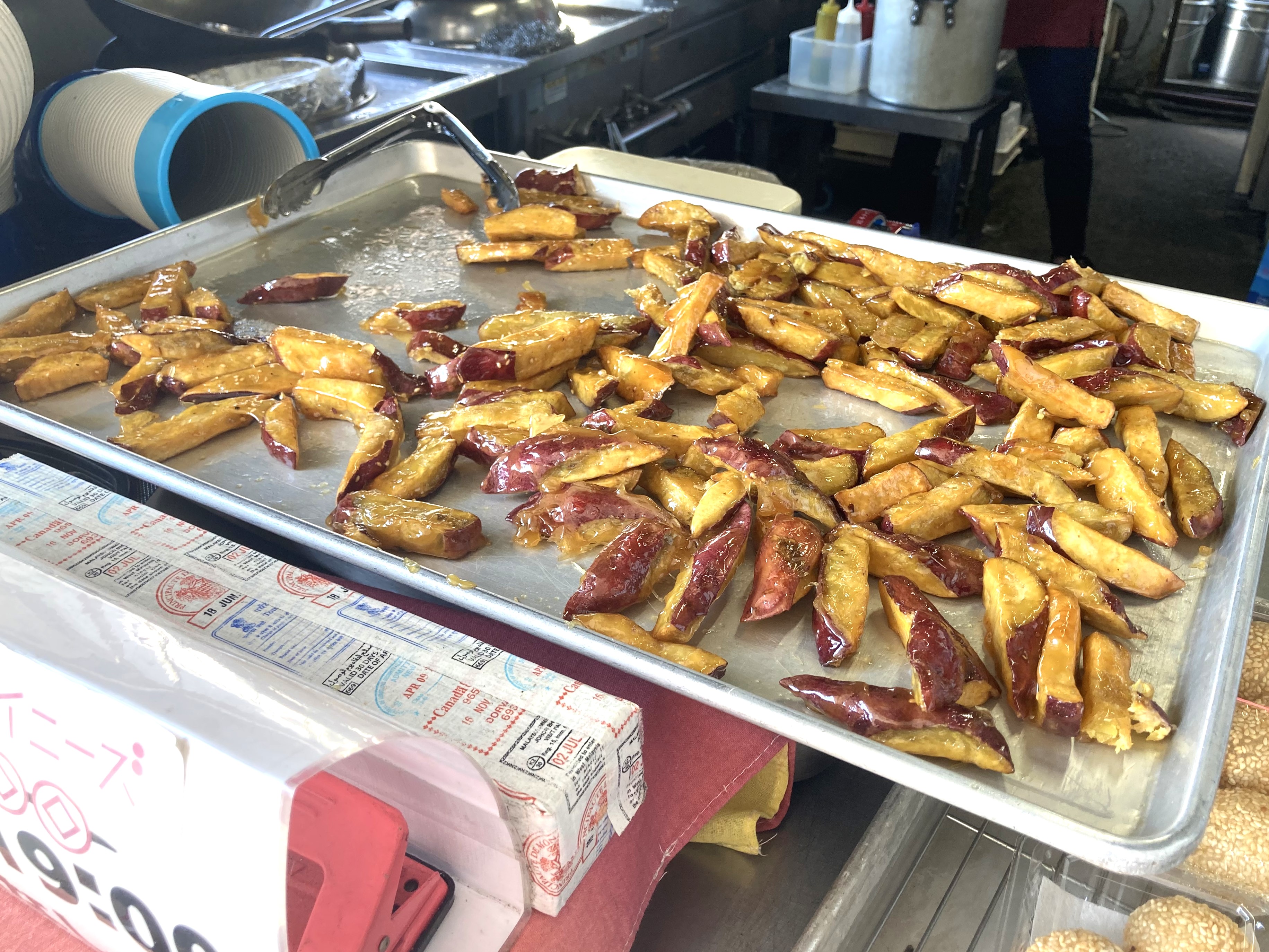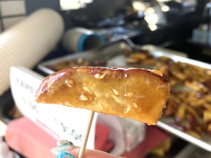テイクアウトの箱にこんもりと詰め込まれています。食べると、お芋がホクホク。飴の層が厚いので、贅沢感もあって満足度が高いです。これはおやつに喜ばれますね。