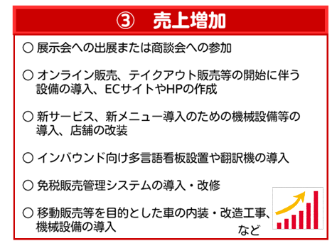 ITやIoTの導入、SNS活用、ECサイトの構築、POSシステムやGPSの導入も支援対象となります。