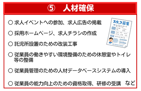 従業員がもっと快適に働けるための整備や求人なども対象。