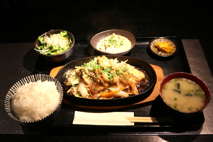 今回は初めてなので人気メニューのホルモン鉄板焼定食を頂きました。