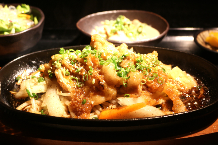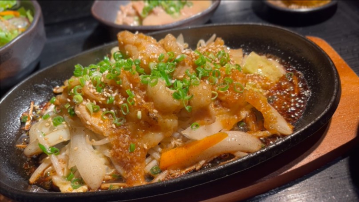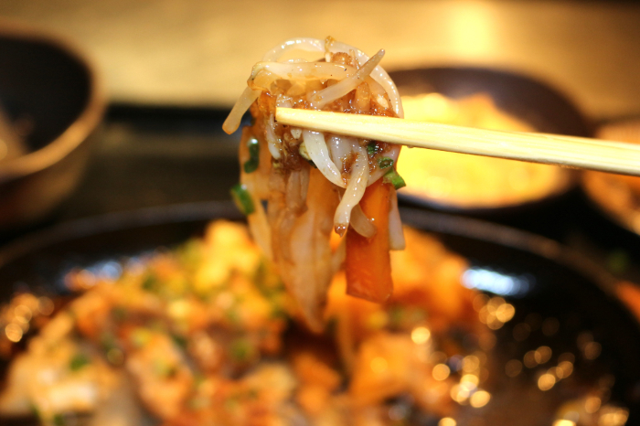 そして、このタレは鉄板にたっぷり乗っている野菜にも合います。というかタレだけでご飯がいける。
