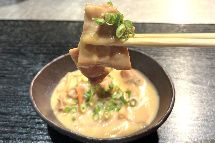 こちらのホルモンは馬ホルモンを使われています。ホルモン鉄板焼と異なり、こちらは噛み切れる柔らかさ。丁寧に5時間以上も煮込んでいるんだそう。