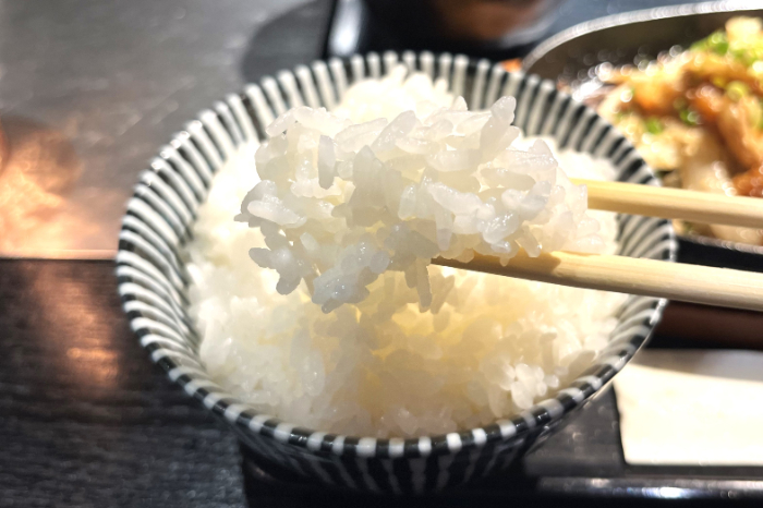 やばい、ご飯がとまりません。ご飯も美味しいのでさらに食欲が加速します。お米もこだわられていて、国産のものを使われています。さらに、時期によって銘柄を変えてその時1番おすすめのご飯を出されるそうです。