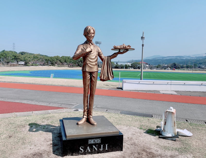 建物に隣接する芝生広場には、2020年に「ONE PIECE」のサンジ像が立ちました。
