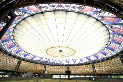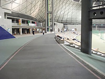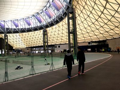 このドーム内の外周がジョギングコースになっていて、1週廻ると450m。2周半で1kmくらい。