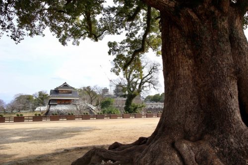 熊本城二の丸広場のクスノキは、季節を問わず美しい枝ぶりを楽しめる常緑樹。熊本に住む人、旅する人を暖かく迎え、包み込んでくれます。