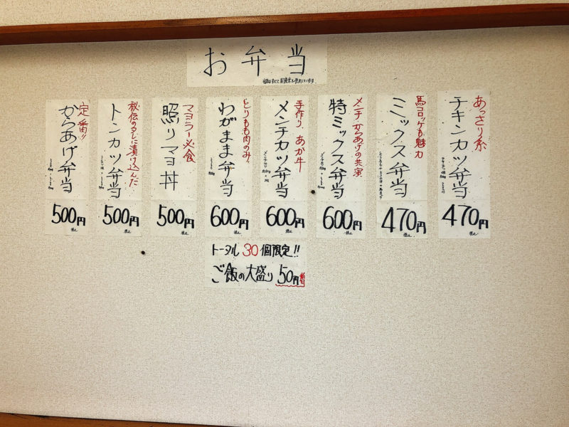さらに、各種お弁当を一日30個限定で販売されています。