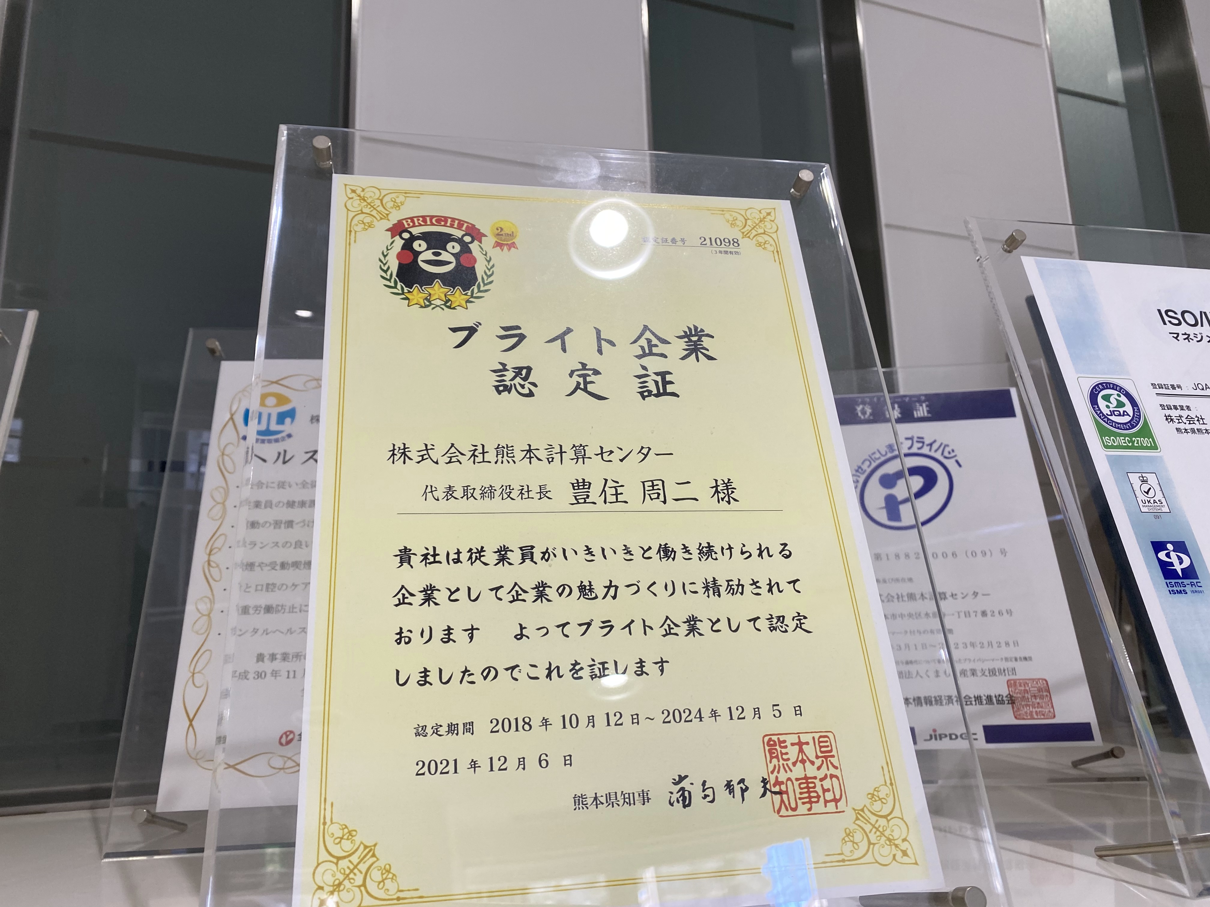 今回お邪魔した株式会社熊本計算センターは熊本県が認定したブライト企業。