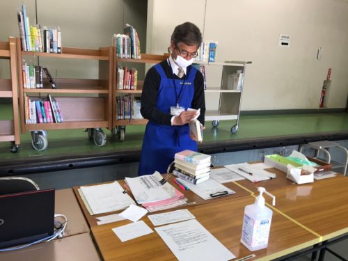 コロナウイルスの対策には気を遣っていらっしゃるそうで、来館者向けの消毒液に加え、本も返却時と貸出前に、1冊ずつ丁寧に拭き上げ、除菌されています。