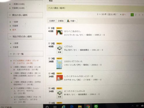 貸出の多い資料のランキングもあるので、そこから選ぶこともできます。