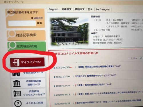 ネット予約は、こちらの熊本県立図書館トップページの、マイライブラリから予約することができます。